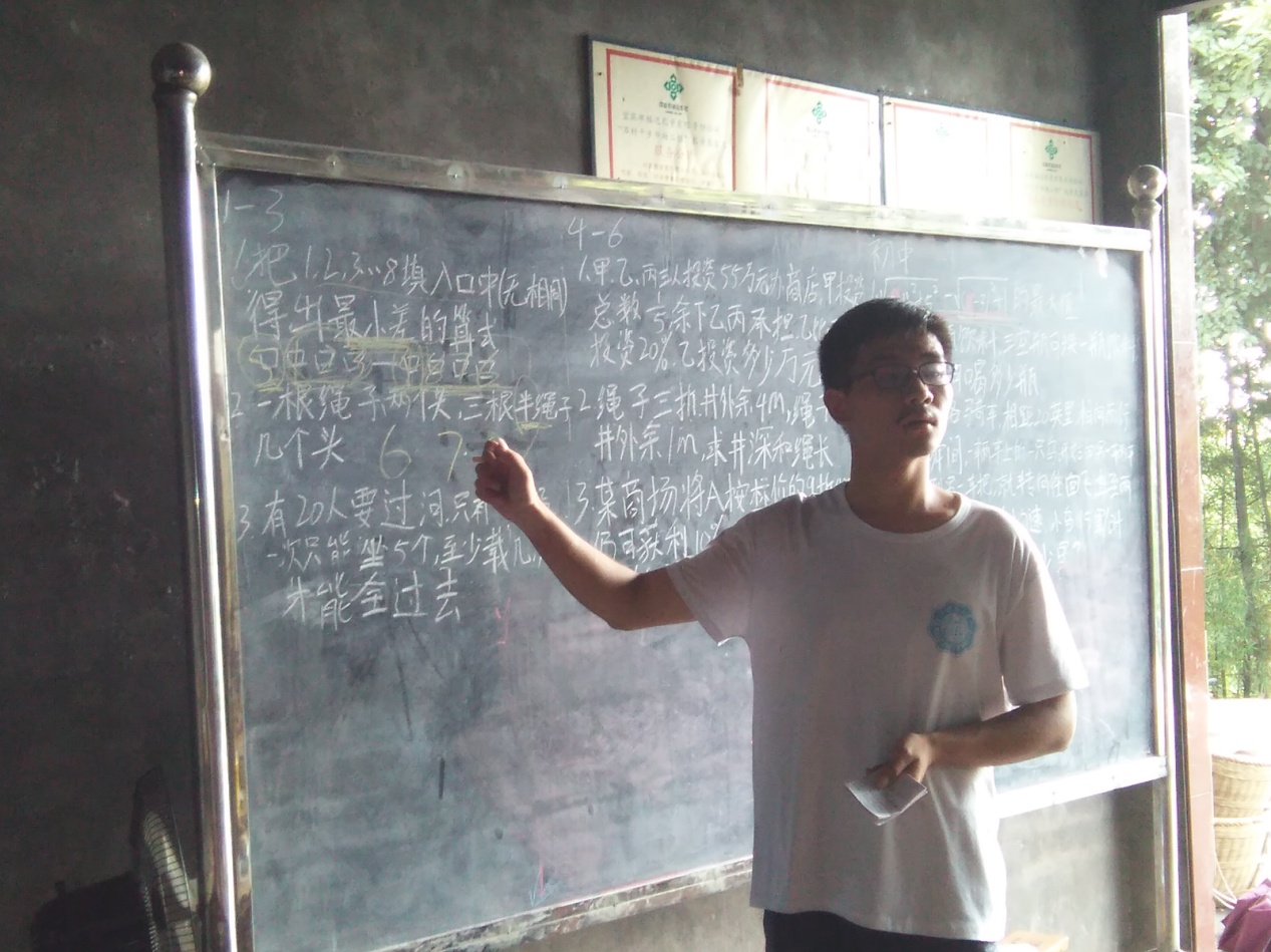 刚进大学时,他还没有完成从高中生到大学生的角色转变,一进校园便被丰富多彩的大学生活给冲击到了,一时间难以找到努力的目标与方向,社团、辩论队、篮球队……直到遇到了支河创新公益社,当知道支河的成员每年都会去偏远山村支教时,他便下定了决心,因为他自己就来自于一个小山村,他知道那里的孩子对于外部世界的渴望与好奇,也知道那里落后的教育水平,所以毫不犹豫的他加入了支河。