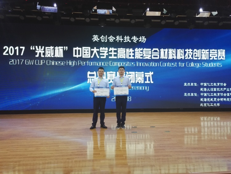 曾少华的团队在2017年“创慧湖杯”第三届苏州独墅湖全国大学生创业大赛中获得铜奖的过程可以说是苦尽甘来。为响应国家号召,学校每年都会举行创业大赛。当时面对学院、学校的推荐,比起欣喜,我感受更多的是压力。他知道此奖项的评选不仅要求参选者热爱科学、乐于探究、积极实践、勇于创新,更重要的是要在工业化生产中显示出较大潜力。他之前的研究很多只是在实验室中实施,相对于其他对国家、社会有巨大影响的金融IT类创业项目来说,相形见绌。于是,他努力联系有丰富参赛经验的同学,不断改进创业项目书;积极与工厂沟通,努力实现产品的工业化生产。最终他的团队在全国524个项目排名第10,这是大家对其工作的一种肯定和激励。同时,他们团队也获得2017年“光威杯”中国大学生高性能复合材料科技创新竞赛三等奖、2018年“创青春”江苏省大学生创业大赛铜奖。