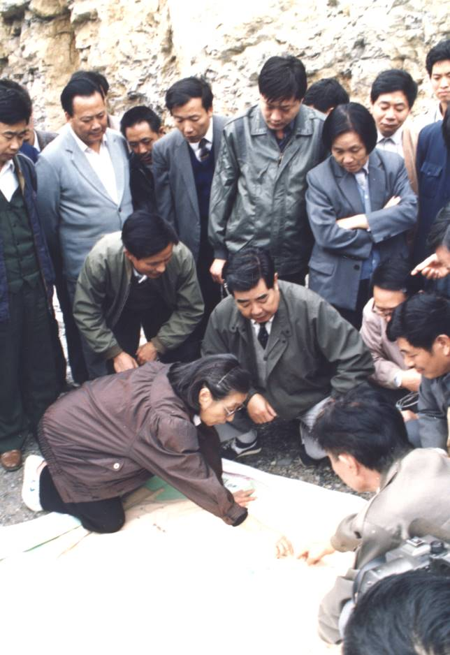 钱正英考察调研,每个项目都要到现场看,每个问题都要搞明白。这是1991年10月考察水布垭坝址。